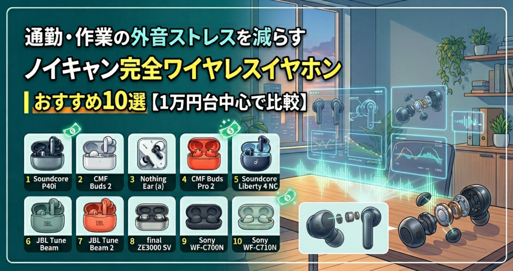 通勤・作業の外音ストレスを減らすノイキャン完全ワイヤレスイヤホン|おすすめ10選【1万円台中心で比較】